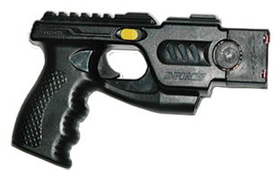 The Enforcer is designed to compete directly with the likes of the Taser X26 and M26 series but at a lower price point. The Enforcer’s Dart Pro options have an effective range of 15 to 21 feet with a similar replaceable nitrogen cartridge as the means for propulsion. The replaceable ammunition cartridges are compatible with the Taser X26 and M26 ECDs, which eliminates the need to order Taser ammo for departments that already possess one of those models. In addition, the Enforcer uses technology that shuts down the unit if aggregate exposure to the body exceeds 15 seconds but can also be overridden. The Phazzer Enforcer features an internal 160-lumen, high-intensity LED light and four alternative variations of non-lethal ammunition cartridges that can each be fired one time. MSRP $599.99.