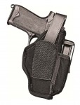 For concealed carry, the Reflex Holster eschews complicated construction and gives shooters easy access to their firearms when they need them most. The Integrated Retention Technology (IRT) features a retention lug on the outer wall of the holster in combination with a press arm on the body side of the holster, allowing for a full and secure grip on the firearm before drawing. While the IRT secures the firearm in the holster, the shooter can quickly release the firearm from the holster by gripping and turning the magazine well of the firearm toward the body. Designed for the Glock 17, 19, 22 and 23.